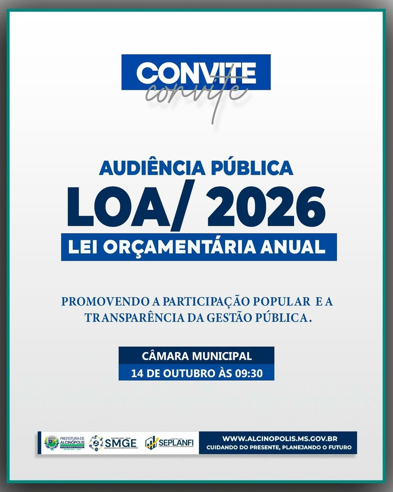 “Sua presença é fundamental! Vamos juntos construir um futuro melhor para Alcinópolis”, reforça o convite divulgado pela administração municipal.